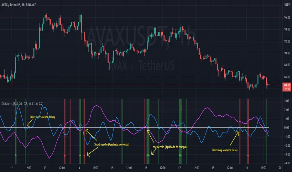 This is a script that helps traders automate the Needles hunt, by adding alerts to the Didi Index indicator. It also alerts for fake Long and Short signals.