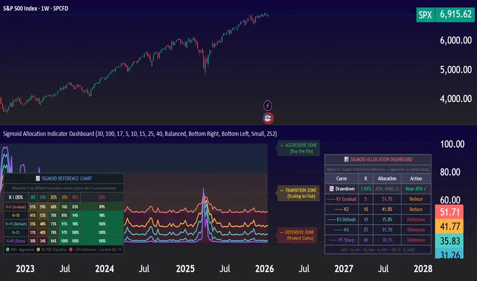 This indicator is a sigmoid-based allocation system that dynamically adjusts a portfolio exposure based on market drawdown.