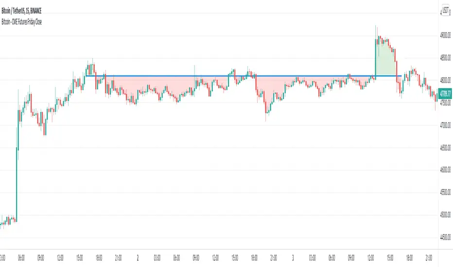 - This indicator is based on the thesis, that during the weekend the Bitcoin price tends to mean reverse to the CME closing price of the prior Friday. The level can also act as support/resistance. This indicator gives a visualization of this key level for the relevant time window.