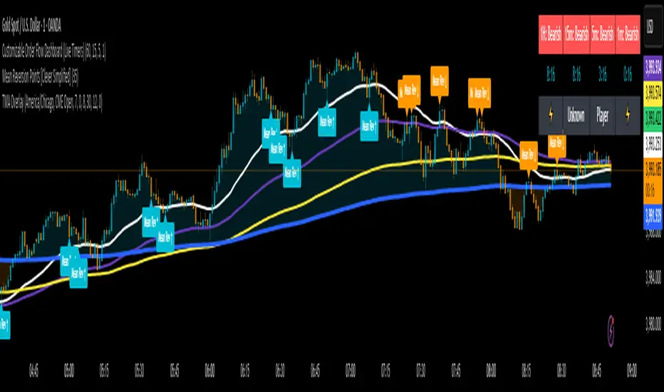 This indicator is designed to identify potential turning points in the market where the price may reverse back toward its mean (average) — a common concept in mean reversion trading strategies.