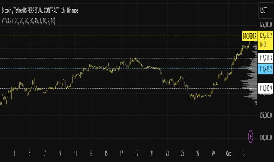 Price shows you where bids and offers met. Volume Profile shows you how much business was done at each price. Put simply: it maps the market’s preference. In any auction, price tends to accept and revisit heavy-traded areas and reject low-participation areas. VP v3.2 turns that logic into a clear picture you can use on any timeframe—from scalps to multi-week swings.