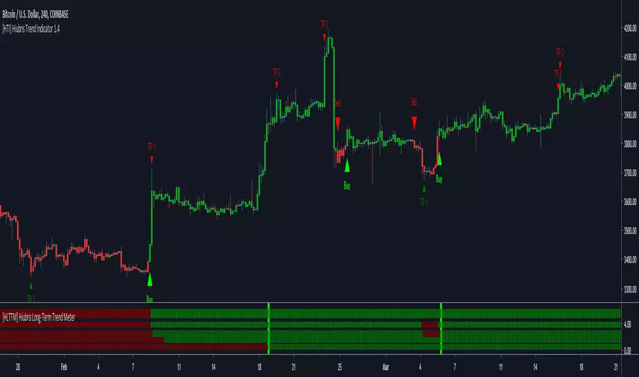 The indicator consists of 3 different Trend meters, ranked from top to bottom, according to their Trend detection accuracy. The bottom Meter is using 3 different candle lengths in order to enhance it's displayed accuracy.