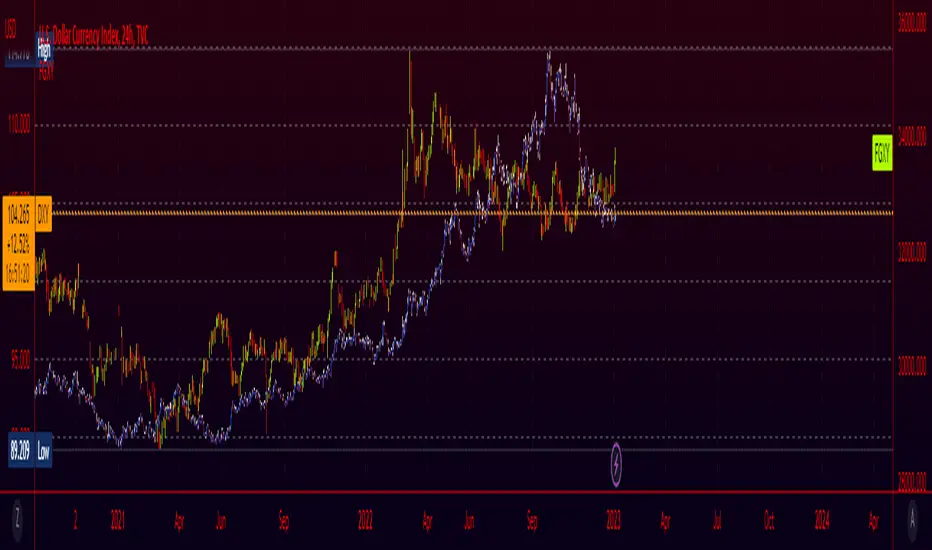 A modification of my previous indicator "Crypto Index (DXY) Candles". The idea was to create a similar currency basket to the standard DXY, but from the perspective of other currencies. Still using the standard DXY weights, this indicator allows you to create a tailored index for other currencies, provided that a currency pair exists for each of the 6 components. This means that even currencies that aren't included should work in theory; just find the 3 character currency prefix used by tradingview and give it a shot! This indicator is useful for gauging how well countries/currencies are holding up and when paired with the standard DXY may help see potential inflection points. For use on longer time frames (~1h-~3d) as some of the data being pulled seems to have issues on lower timeframes.