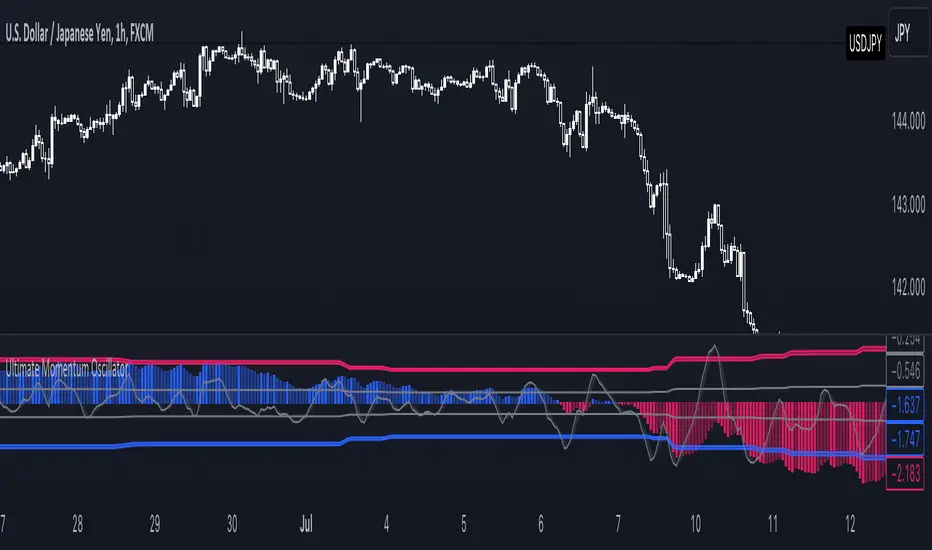 The Ultimate Momentum Oscillator is a tool designed to help traders identify the current trend direction and the momentum of the prices.