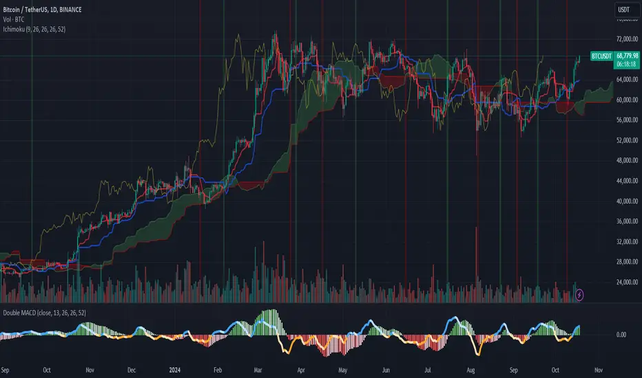This indicator is exactly like the original ichimoku indicator, but with 104 Line (x4 timeframe), 208 Line (x8 timeframe), Quality Line and Tenken-sen & Kijun-sen crossovers added as well. The extras added to the indicator can simply be hidden in order to make the chart look less full.
