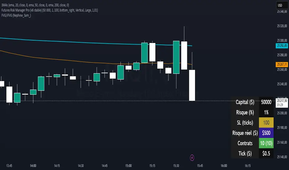 You must first enter your capital and your risk percentage. Then, when you specify your stop-loss size in ticks, the indicator will immediately tell you the number of contracts to use to stay within your risk percentage.