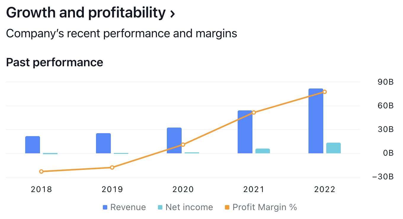 Der Umsatz und der Gewinn können uns viel über den Zustand und die Strategie eines Unternehmens erzählen. Zum Beispiel: Wenn der Umsatz steigt, dann kann dies bedeuten, dass das Unternehmen mehr Kunden gewinnt, mehr Produkte oder Dienstleistungen anbietet oder in neue Märkte expandiert. Wenn der Umsatz sinkt, dann kann dies bedeuten, dass das Unternehmen Kunden verliert, mehr Konkurrenz hat oder sich aus bestimmten Märkten zurückzieht. Das Umsatzwachstum ist üblicherweise ein positives Zeichen für Anleger, da es anzeigt, dass es eine starke Nachfrage für die Produkte oder Dienstleistungen des Unternehmens gibt, was in der Folge bedeutet, dass das Potenzial besteht, dass das Unternehmen seinen Marktanteil steigern wird.