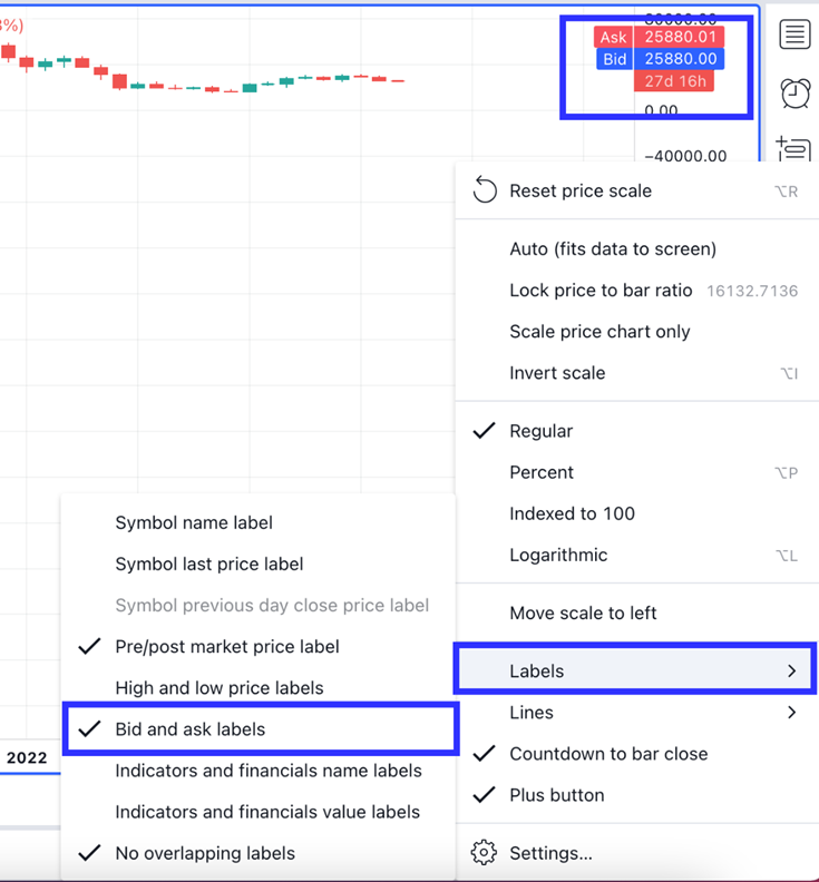 Sie können auch ihre Labels auf der Preisskala aktivieren.
