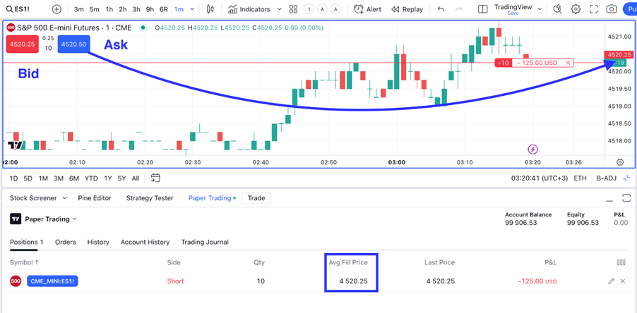 (4520,25 – 4520,50) × 10 × 50 = −125 USD