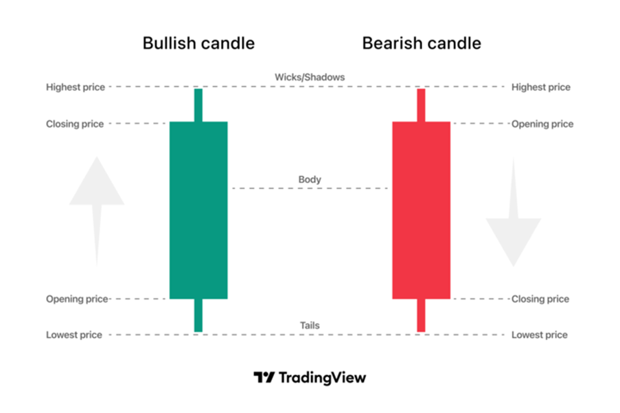 Eine Standardkerze besteht aus einem viereckigen Körper und stellt den Eröffnungs- und Schließungspreis dar, der Docht stellt hierbei die Höchst- und Tiefstpreise in diesem Zeitraum dar.