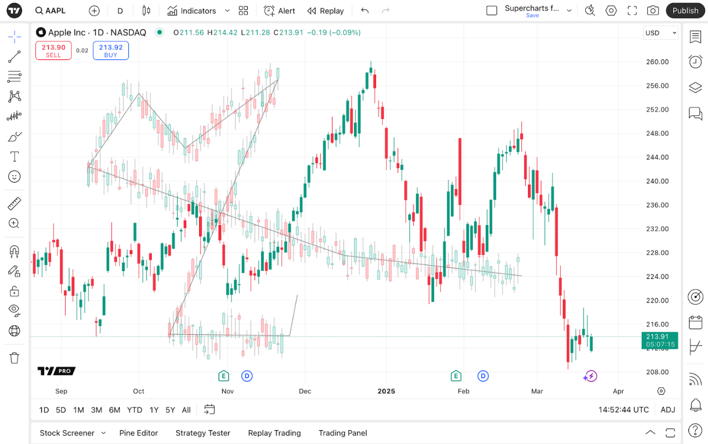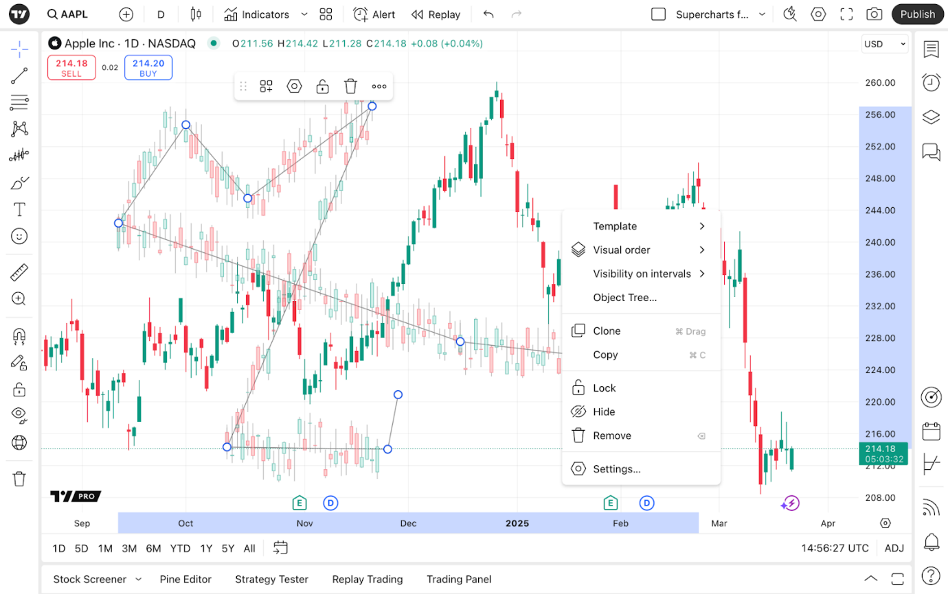 Sehen wir uns nun an, was die Kapazitäten dieses Zeichentools für Ihre Charts bedeuten können.