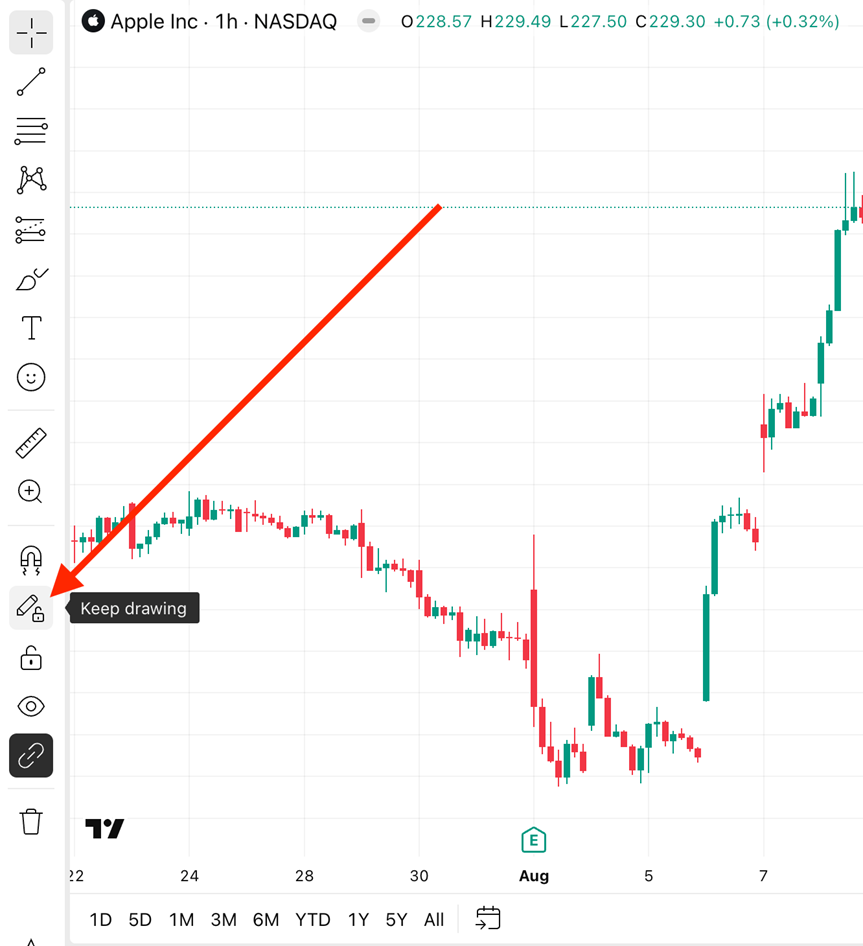 Jedes Mal, wenn ich auf den Chart klicke, fügt mein Zeichentool neue Zeichnungen hinzu