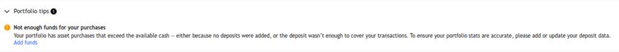 Hinweis: Das System überprüft die Geldmittel für das Datum der Handelstransaktion. Die Benachrichtigung wird angezeigt, selbst wenn Sie später Geldmittel hinzugefügt haben und Ihr aktuelles Guthaben positiv ist.
