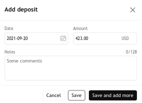 Klicken Sie auf Geldmittel hinzufügen, überprüfen Sie das Datum und den Betrag und klicken Sie dann auf Speichern.