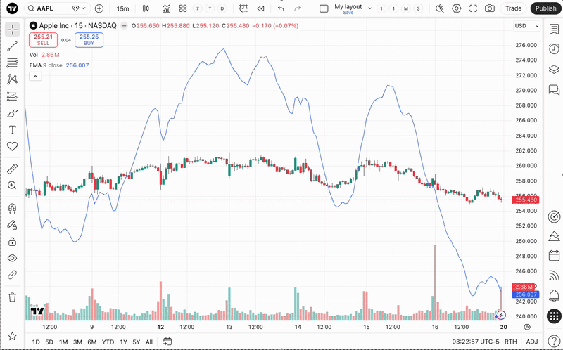- Der Indikator bewegt sich unabhängig von den Kerzen, wenn Sie den Chart scrollen oder zoomen.