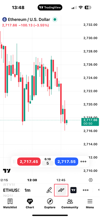 - Dann drücken Sie lange auf den Chart