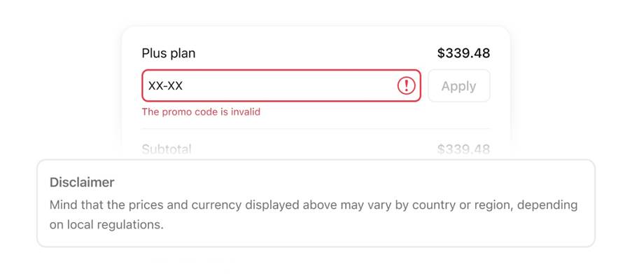 „Der Werbecode ist ungültig“. Diese Fehlermeldung wird angezeigt, wenn der Coupon abgelaufen ist, nicht mit dem Abonnement übereinstimmt, welches Sie kaufen möchten, oder für Ihr Land nicht verfügbar ist. Sehen Sie sich in diesem Fall die Couponangaben noch einmal genau an. Wenn Sie glauben, dass alles stimmt, aber der Coupon einfach nicht funktioniert, dann kontaktieren Sie bitte unseren Kundendienst.