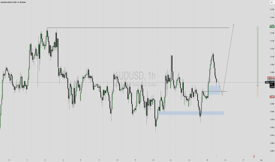 AUD/USD 23.02.26Der AUD/USD hat vom D1 Orderblock bullisch reagiert und ein H1 OB hinterlassen. Über dem Kurs ist ein Hoch. Geht der Kurs nochmals nach oben und dann short. Kurzfristig wäre ein Long-Setup möglich, sollte der Kurs vom H1 OB reagieren und das Hoch erreichen. Ab dem Hoch wäre ein Shortsetup möglich, s
